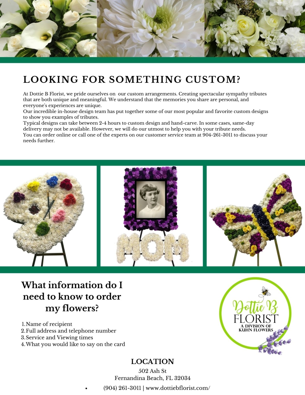 If you are looking for a one-of-a-kind tribute, our designers specialize in creating custom arrangements. We can craft a unique and meaningful piece that honors the personality and cherished memories of the person you are remembering.